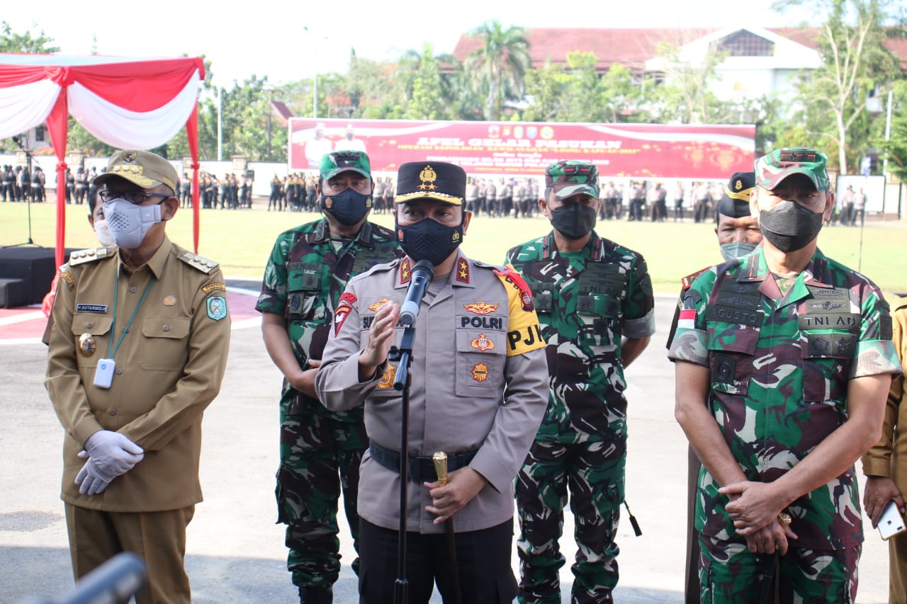 Panglima Kodam XII/Tanjungpura (Tpr), Mayjen TNI Sulaiman Agusto, SIP, MM bersama Forkopimda Provinsi Kalimantan Barat menghadiri Apel Gelar Pasukan Operasi Kepolisian Kewilayahan “Liong Kapuas 2022”, bertempat di Lapangan Jananuraga, Mapolda Kalimantan Barat.