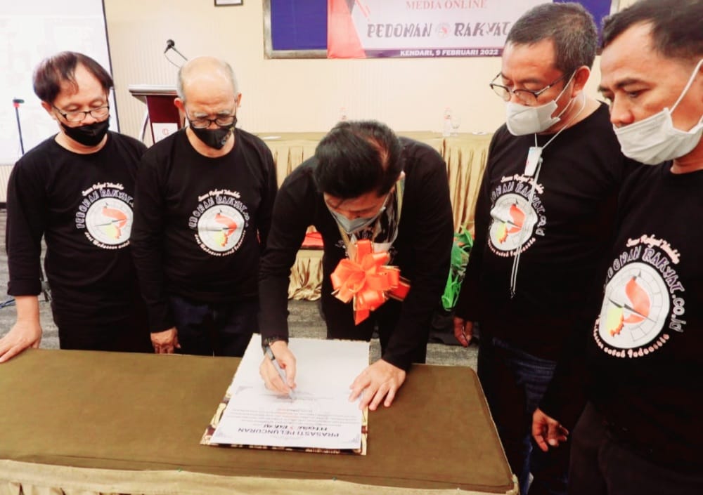 Bertepatan Hari Pers Nasional (HPN), Ketua PWI Pusat Bidang Organisasi, Zulkifli Gani Ottoh, SH memimpin acara launcing/peluncuran media online pedomanrakyat.co.id, Rabu 9 Februari 2022 di Ruang Jasmine, Claro Hotel di Kendari.