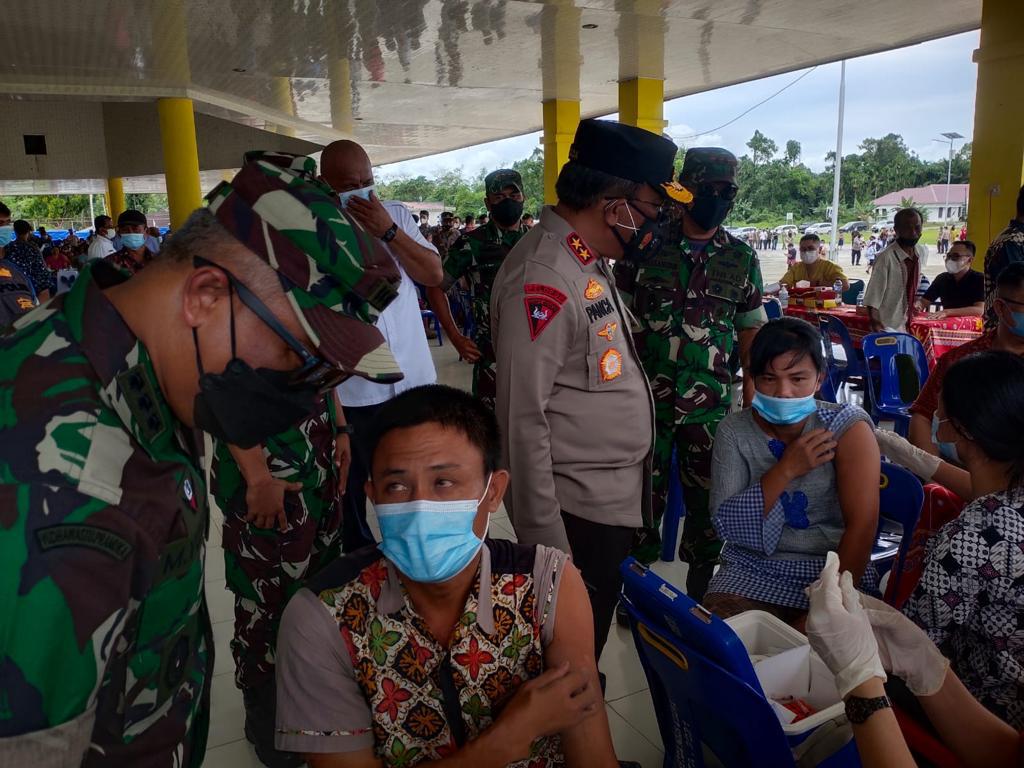 Pangdam I/Bukit Barisan (BB) Mayjen TNI Hassanudin, SIP, MM, Kapolda Sumatera Utara Irjen Pol. Drs. R.Z Panca Putra, M.Si meninjau langsung pelaksanaan Vaksinasi di Kabupaten Nias Utara, Kamis (17/02/2022).