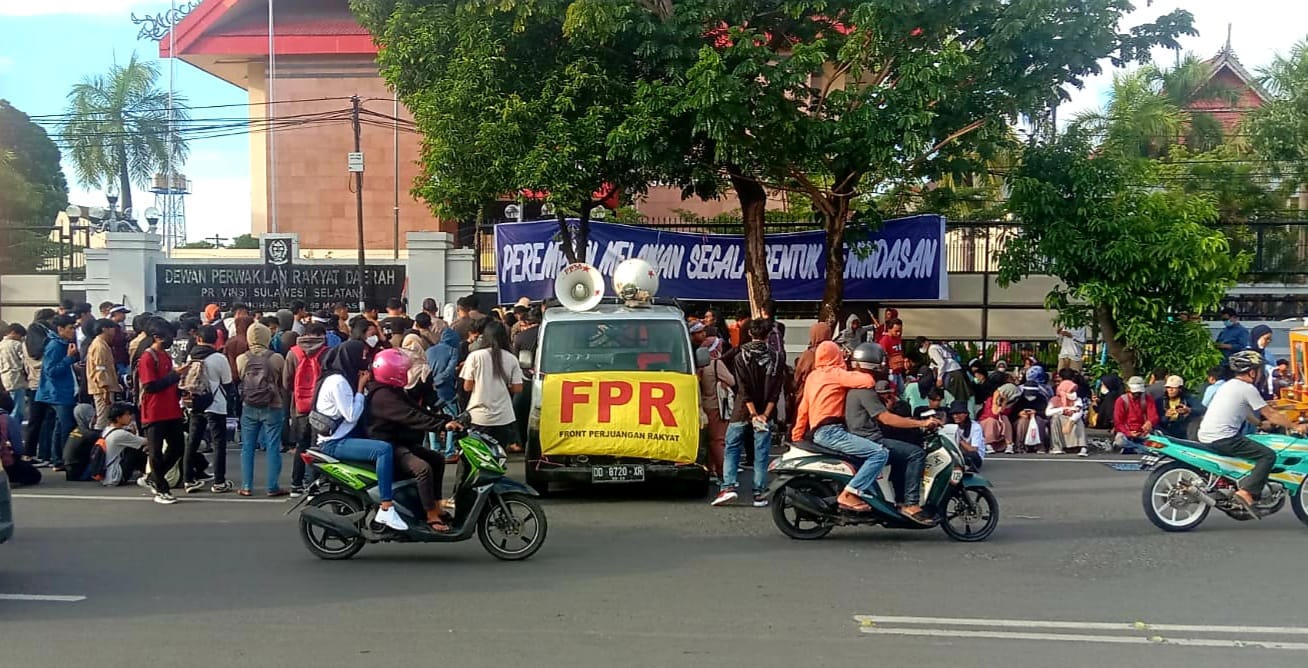 PEDOMANRAKYAT, MAKASSAR – Front Perjuangan Rakyat (FPR) yang tergabung dari beberapa Aliansi Mahasiswa dan Komunitas Lingkungan Hidup, menggelar aksi unjuk rasa menuntut hak penggusuran rumah warga pesisir pantai Merpati, Kabupaten Bulukumba, di DPRD Provinsi Sulawesi Selatan, Selasa (08/03/2021).