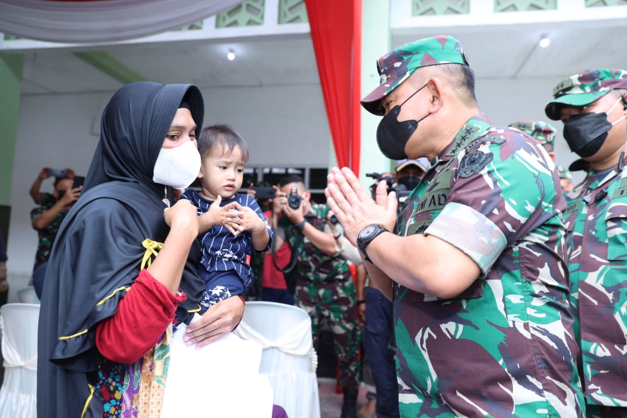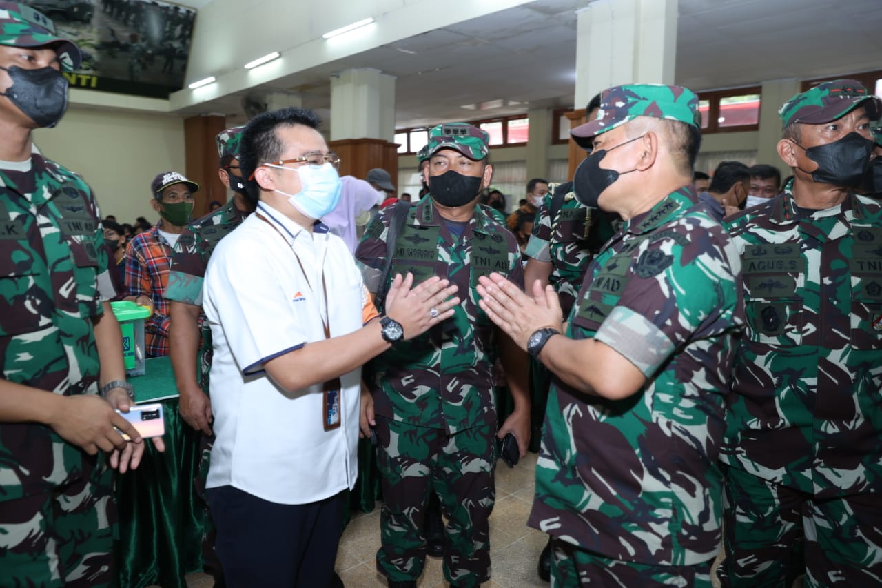 PEDOMANRAKYAT, PALEMBANG – Kepala Staf Angkatan Darat (Kasad) Jenderal TNI Dudung Abdurachman, SE, MM meninjau pelaksanaan vaksinasi gotong-royong sebanyak 1.000 vaksin, sinergi TNI AD dengan Kimia Farma di Balai Prajurit Bekangdam II/ Sriwijaya, Palembang, Senin (07/03/2022).