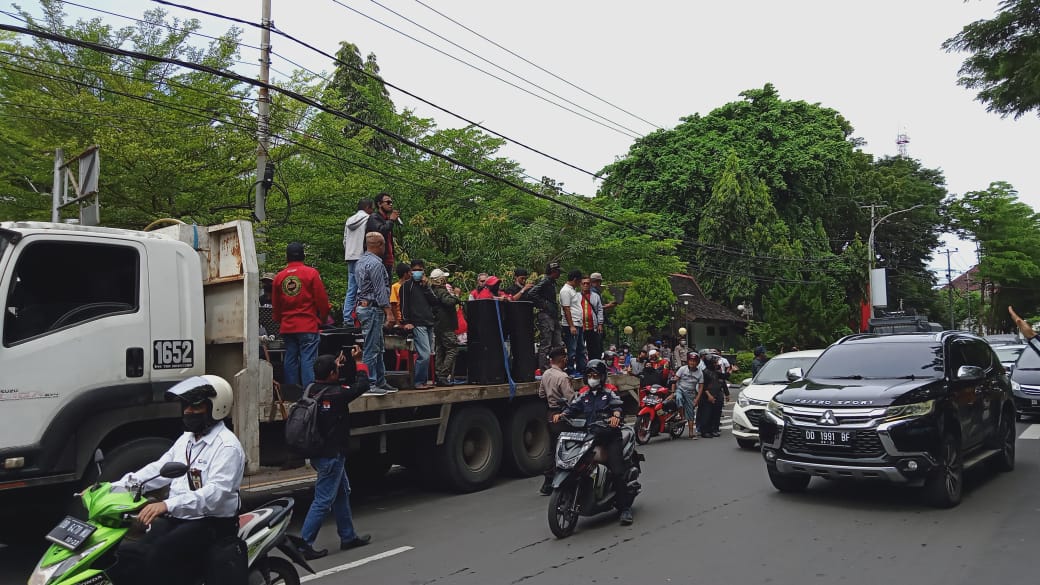 PEDOMANRAKYAT, MAKASSAR – Aksi Damai Ketua-ketua RT/RW se-Kota Makassar digelar di depan Kantor Balaikota Makassar, Jalan Ahmad Yani, Kelurahan Pattunuang Kecamatan Ujung Pandang, Kota Makassar, Senin (21/03/2022) siang. Ratusan massa pengunjuk rasa yang terdiri dari Ketua-ketua RT/RW dan warga datang menyampaikan orasi.