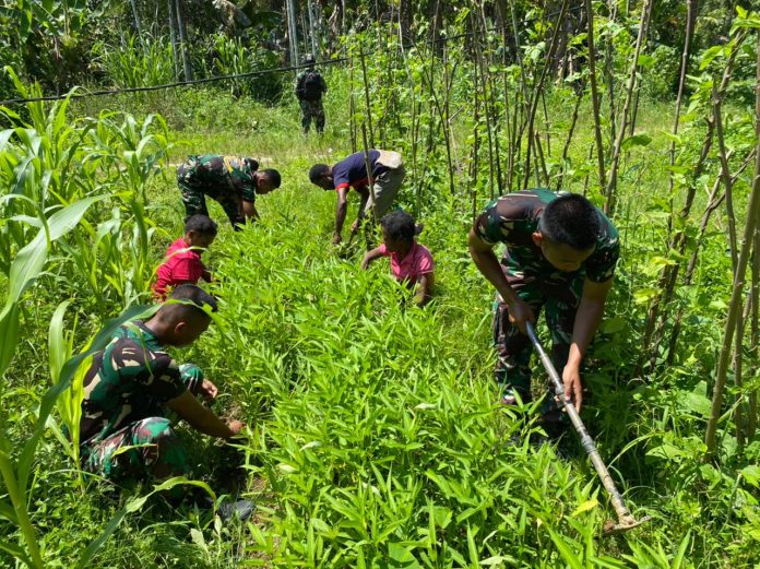 Apa itu, ternyata membantu warga dalam bertani dan berkebun di wilayah perbatasan negara RI di Papua, yaitu berkebun sayur-sayuran dan jagung di Kampung Suskun, Distrik Arso Timur, Kabupaten Keerom, Papua, Minggu (07/08/2022).