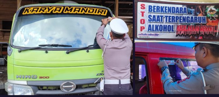 Edukasi dilakukan melalui pemasangan stiker pada kendaraan yang melintas di sepanjang jalan poros Makale Rantepao, dan memberikan imbauan secara lansung kepada para pengemudi, Kamis (19/10/2023).