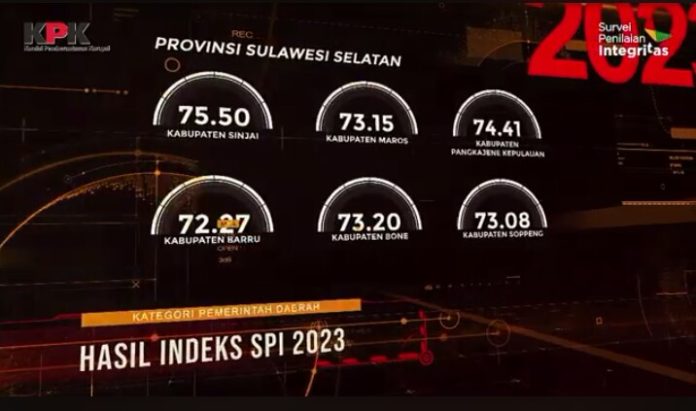 Berdasarkan hasil dari SPI tersebut, KPK memberi nilai integritas untuk Kabupaten Sinjai pada tahun 2023 sebesar 75,50 persen. Artinya, nilai integritas yang diraih Kabupaten Sinjai naik 0.09 persen dibanding tahun 2022.