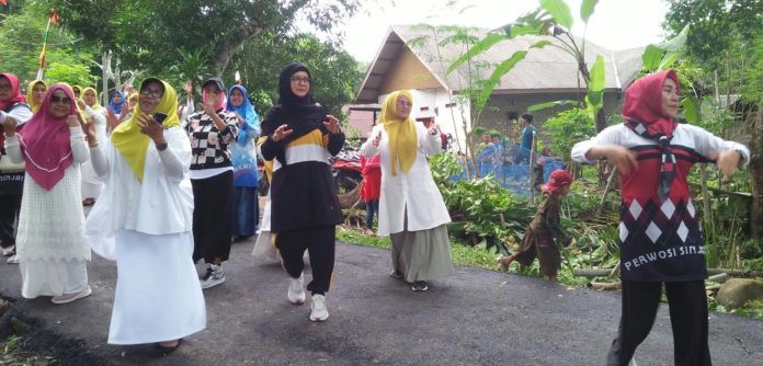 PEDOMANRAKYAT, SINJAI — Ketua Dewan Penasehat Gabungan Organisasi Wanita (GOW) Kabupaten Sinjai mengikuti senam sehat bersama para pengurus GOW di Situs Perjanjian Topekkong, Lingkungan Taipa Kelurahan Biringere Kecanatan SinjainItara, Jumat (23/2/2024) sore.