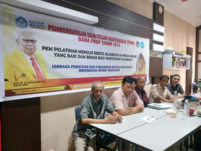 PKM ini berupa Pelatihan Menulis Berita Olahraga di Media Online yang Baik dan Benar bagi Wartawan Olahraga ini juga melibatkan dua dosen UNM yakni Dr Yasriuddin, M.Pd dan Dr Muhammadong, MAg.