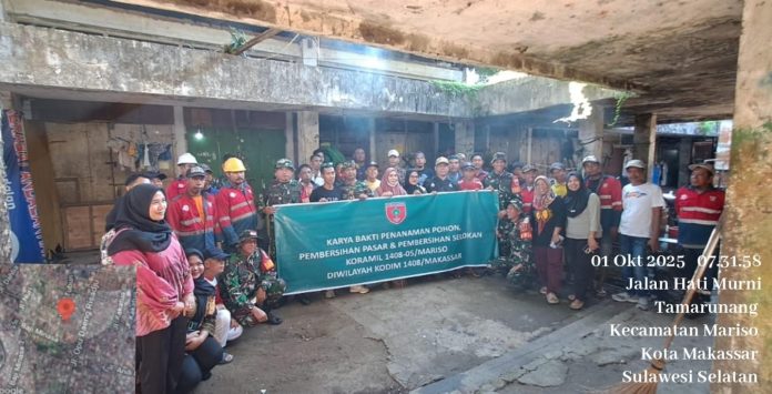 PEDOMANRAKYAT, MAKASSAR – Koramil 1408-05/Mariso kembali menunjukkan kepeduliannya terhadap lingkungan dengan melaksanakan Karya Bhakti Pembersihan Pasar di Jalan Hati Murni, Kelurahan Tamarunang, Kecamatan Mariso, Kota Makassar, pada Selasa (1/10/2025). Kegiatan ini menjadi wujud nyata sinergi TNI bersama masyarakat dalam menjaga kebersihan lingkungan.