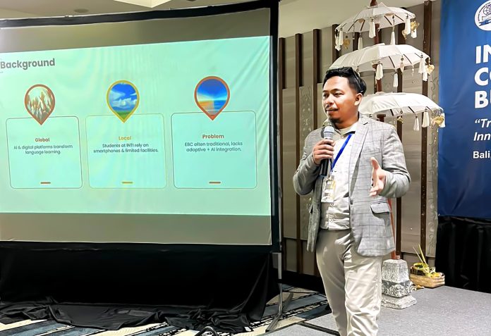 Dalam forum bergengsi tersebut, Ali Syahban Amir yang juga kandidat doktor Universitas Negeri Makassar mempresentasikan riset terbarunya berjudul “Adaptive Digital Literacy in English for Business Communication: Emerging Trends and Future Directions in AI-Enhanced Language Learning”. Penelitian ini berfokus pada pengembangan modul English for Business Communication (EBC) berbasis literasi digital adaptif dengan dukungan kecerdasan buatan (AI).