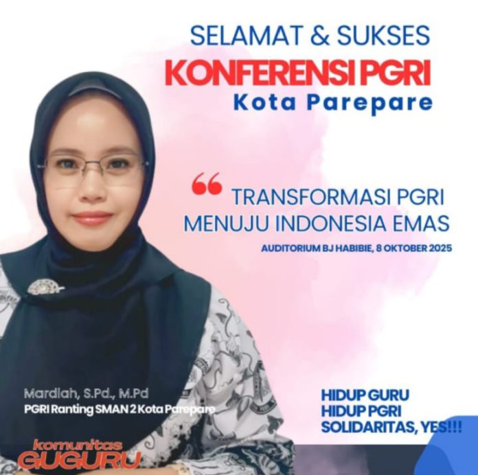 Kepala UPT SMA Negeri 2 Parepare, Mardiah, S.Pd., M.Pd., terpilih secara aklamasi sebagai Ketua PGRI Parepare periode 2025–2030 dalam konferensi yang digelar di Auditorium BJ Habibie, Rumah Jabatan Wali Kota Parepare, Rabu, 8 Oktober 2025.