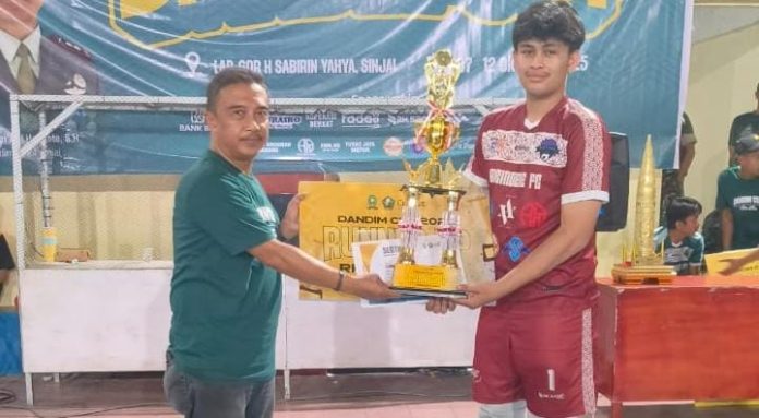 PEDOMANRAKYAT, SINJAI — Komandan Kodim (Dandim) 1424 Sinjai, Letkol Arm Arif Hartanto secara resmi menutup turnamen Futsal Dandim Cup 2025 di Lapangan GOR Futsal H. Sabirin Yahya, Minggu (12/10/2025) malam.