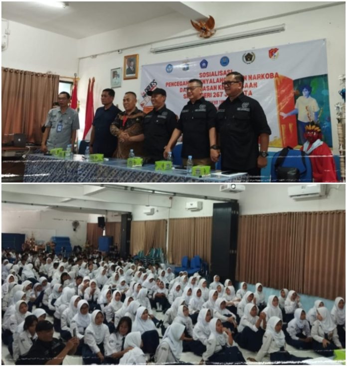 PEDOMANRAKYAT, JAKARTA – Dalam upaya menanggulangi bahaya penyalahgunaan narkoba sejak usia dini, Persatuan Wartawan Indonesia (PWI) Kelompok Kerja (Pokja) Wali Kota Jakarta Selatan (Jaksel) bersama Sekolah Menengah Pertama Negeri (SMPN) 267, Jakarta Selatan melaksanakan kegiatan sosialisasi bahaya narkoba dan perluasan pengetahuan wawasan kebangsaan di SMPN 267, Jakarta di kawasan Jalan Mairin Swadarma Raya, Ulujami, Pesanggrahan, Jakarta Selatan, Kamis (16/10/2025).