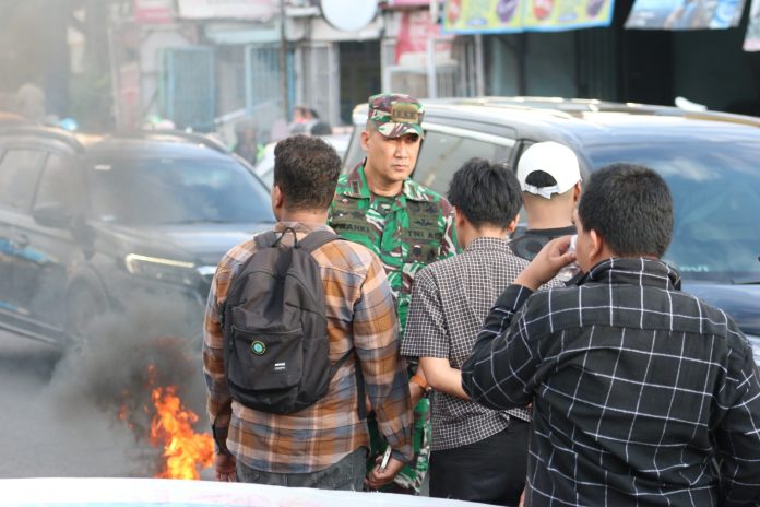 Namun, sekitar pukul 16.30 Wita, situasi sempat memanas ketika massa aksi bergeser ke arah Fly Over Makassar. Beberapa mahasiswa membakar ban bekas dan memblokade jalan menggunakan spanduk dan bambu. Melihat potensi kericuhan, Dandim 1408/Makassar Kolonel Inf Franki Susanto, SE., dengan sigap turun langsung ke lokasi untuk memastikan situasi tetap terkendali dan masyarakat sekitar tetap aman.