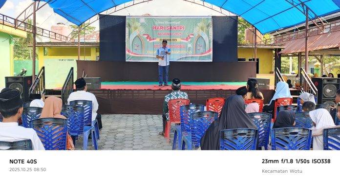 PEDOMANRAKYAT, LUTIM – Suasana meriah menyelimuti halaman Masjid Jami Nurul Falah, Desa Manunggal, saat MTsS Sabilit Taqwa Margomulyo menggelar Pentas Seni dan Market Day dalam rangka memperingati Hari Santri 2025, Sabtu (25/10/2025). Kegiatan ini berlangsung sebagai ajang kreasi dan pemberdayaan ekonomi santri.