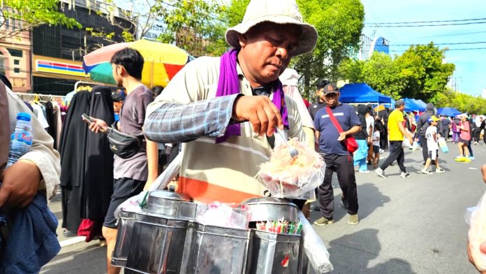 Ia bukan duduk di balik meja, atau di bawah tenda, melainkan di tengah jalan. Berpakaian seadanya dengan keranjang berisi dalgona — permen gula Korea yang terbuat dari gula dan soda kue — yang melingkar di lehernya. Aroma karamel yang samar menjadi mantra penarik rezeki. Dengan harga lima ribu rupiah per buah, ia menawarkan cita rasa manis di Car Free Day Boulevard Panakkukang, Ahad (13/10/2025) pagi itu.