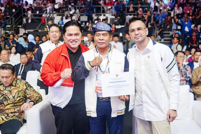 PEDOMANRAKYAT, JAKARTA – Dalam acara puncak peringatan Hari Sumpah Pemuda (HSP) ke-97 yang berlangsung di Hall Basket Gelora Bung Karno (GBK) Senayan, Jakarta pada Selasa (28/10/2025) malam, Menteri Pemuda dan Olahraga (Menpora) RI, Erick Thohir memberikan penghargaan Wirasena 2025 kepada sejumlah kepala daerah di Indonesia.