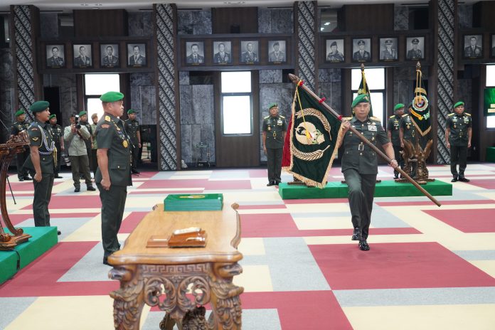 Pergantian kepemimpinan ini menandai momentum penting dalam dinamika organisasi TNI Angkatan Darat. Melalui prosesi yang berlangsung khidmat, Mayjen TNI Windiyatno menyerahkan tongkat komando kepada penggantinya, Mayjen TNI Bangun Nawoko, di hadapan jajaran pejabat tinggi TNI AD.