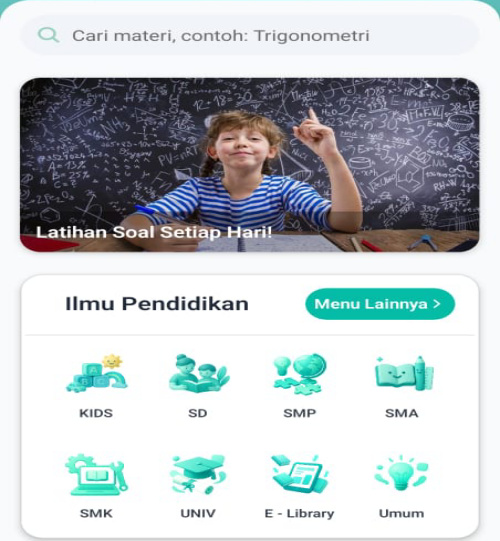 Bisolpin menyediakan berbagai modul belajar untuk siswa mulai dari TK, SD, SMP, SMA/SMK, mahasiswa, serta masyarakat umum. Platform ini menawarkan :