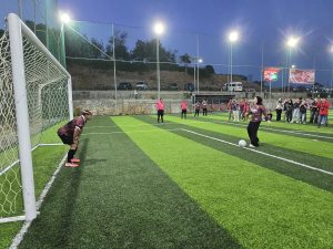 “Bahkan bapak Gubernur telah menjanjikan bahwa tim terbaik di turnamen ini nantinya akan dibawa mengikuti Liga Sepakbola Mini Nusantara di Surabaya yang diselenggarakan oleh KMSI Pusat,” tandas isteri dari Dr. Zainal Arifin Paliwang, SH, MH ini lalu membuka resmi turnamen dengan mengetuk mikrofon sebanyak 3 kali, kemudian melakukan tendangan bola pertama ke arah gawang yang dijaga sang suaminya sendiri.
