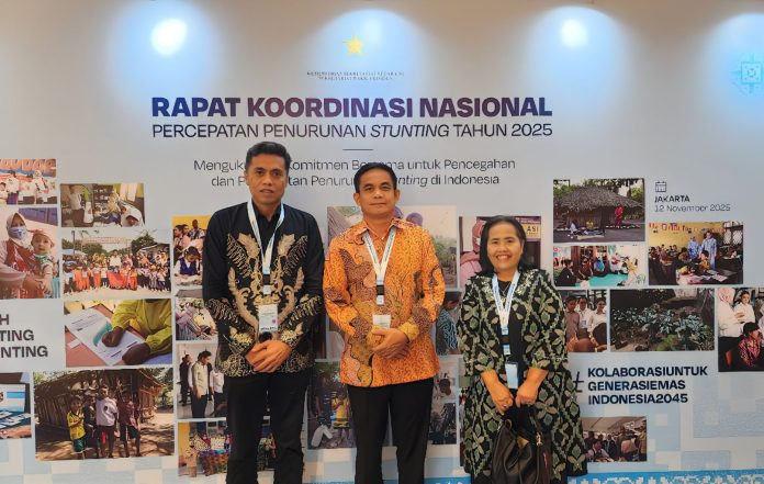 PEDOMANRAKYAT, PINRANG – Wakil Bupati Pinrang, Sudirman Bungi bersama Kepala Dinas Kesehatan, drg Dyah Puspita Dewi dan Kepala Bapperida Pinrang, A Fahruddin Renreng menghadiri kegiatan Rapat Koordinasi Nasional (Rakornas) Percepatan Penurunan Stunting Tahun 2025 yang dibuka langsung Wakil Presiden, Gibran Rakabuming Raka di Gedung Adyatma, Kementerian Kesehatan RI, Jakarta, Rabu (12/11).