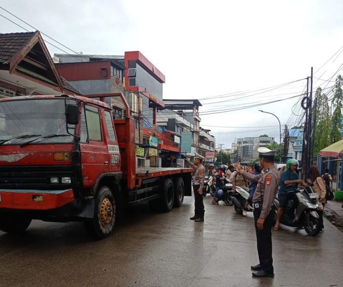 Tak Ingin Warga Terjebak Macet, Unit Satlantas Polsek Ujung Tanah Sigap Atur Arus Lalu Lintas di Tengah Genangan