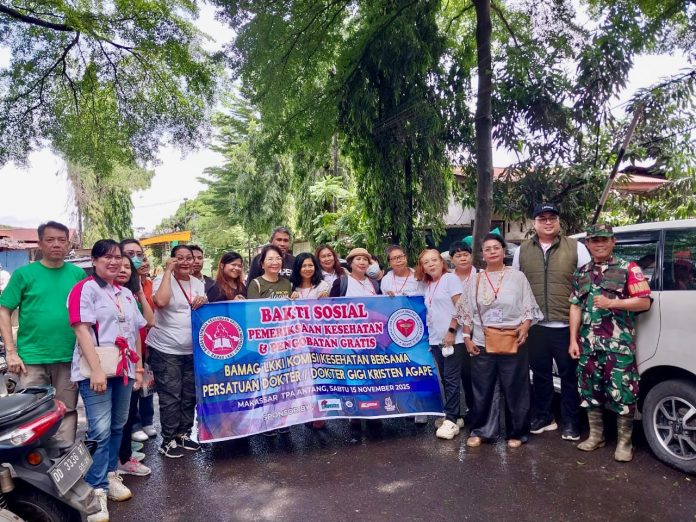 PEDOMANRAKYAT, MAKASSAR – Sebagai wujud toleransi terhadap sesama umat manusia, Bamag LKKI Kota Makassar bekerjasama dengan dokter-dokter Agape dan Dinas Kesehatan Provinsi Sulawesi Selatan (Sulsel) menggelar kegiatan Bakti Sosial (Baksos) berupa Pengobatan Gratis bagi masyarakat yang berdomisili di Kelurahan Tamangapa.
