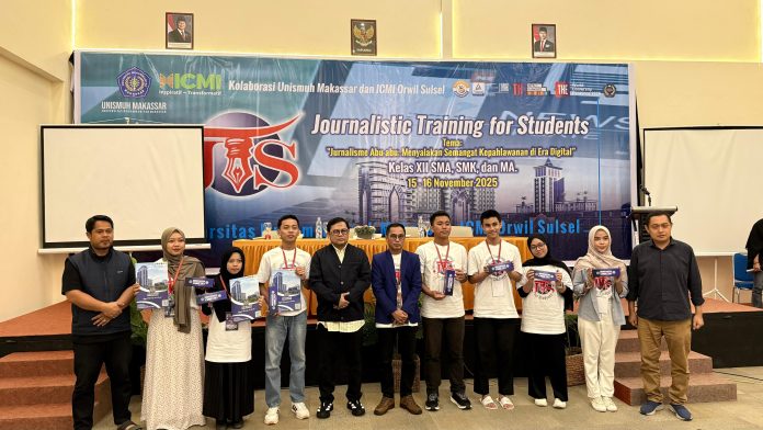 PEDOMAN  RAKYAT, MAKASSAR.- Kegiatan Jurnalistic Training for Students (JTS) 2025 yang digelar Universitas Muhammadiyah Makassar (Unismuh Makassar) bekerja sama dengan ICMI Orwil Sulawesi Selatan resmi ditutup pada Ahad, 16 November 2025 di Hotel Grand Makassar.