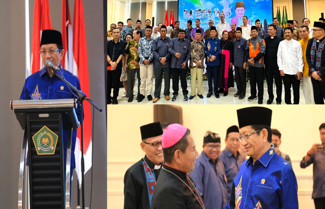 PEDOMANRAKYAT, MAKASSAR — Menteri Agama RI, Prof. Dr. KH. Nasaruddin Umar, MA., menghadiri silaturahmi bersama tokoh lintas agama di Aula Kantor Wilayah Kementerian Agama Provinsi Sulawesi Selatan, Minggu (16/11/2025). Kegiatan tersebut bertepatan dengan peringatan Hari Toleransi Internasional dan menjadi ajang penguatan dialog lintas iman serta kolaborasi kerukunan di Sulawesi Selatan.