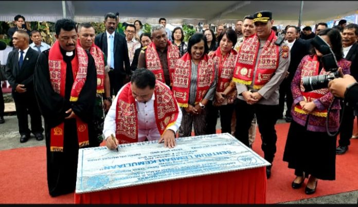 “Jika kemudian bangunan ini sudah bagus, maka jemaat harus menciptakan perilaku hidup yang baik dalam berbangsa dan bernegara,” tukas Bupati Piet.