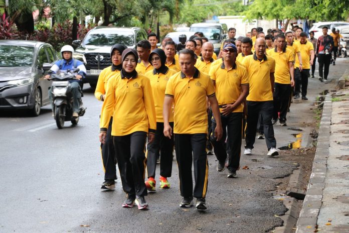 PEDOMANRAKYAT, MAKASSAR – Semangat menjaga kesehatan terus digaungkan di lingkungan Kepolisian Resor Pelabuhan Makassar. Usai pelaksanaan apel pagi, seluruh personel Polres Pelabuhan Makassar melaksanakan olahraga bersama berupa Jalan Sehat. Sebagai bentuk komitmen menjaga imunitas dan kebugaran tubuh di tengah musim penghujan.