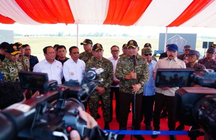 PEDOMANRAKYAT, MOROWALI — Panglima TNI Jenderal TNI Agus Subiyanto mendampingi Menteri Pertahanan RI Sjafrie Sjamsoeddin, Jaksa Agung ST Burhanuddin, dan Kepala BPKP Muhammad Yusuf menyaksikan langsung Latihan Komando Gabungan (Kogab) TNI Terintegrasi 2025 di kawasan Bandara PT IMIP, Morowali, Sulawesi Tengah, Kamis (20/11/2025). Latihan berskala besar ini melibatkan 26.998 prajurit lintas matra, menjadikannya salah satu gelaran latihan operasi gabungan terbesar TNI tahun ini.