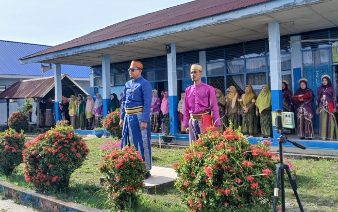 Para guru tampil anggun mengenakan pakaian adat Sulawesi Selatan, sekaligus bertugas sebagai pelaksana upacara.