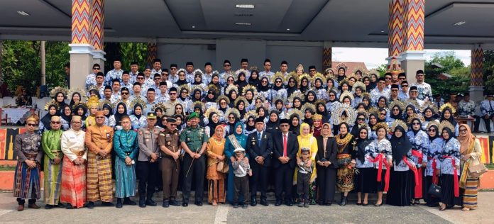 Sebelum upacara dimulai, siswa-siswi SMA dan SMK Kabupaten Wajo mempertunjukkan persembahan tari kolosal yang memukau dan mendapatkan apresiasi dari seluruh tamu undangan.