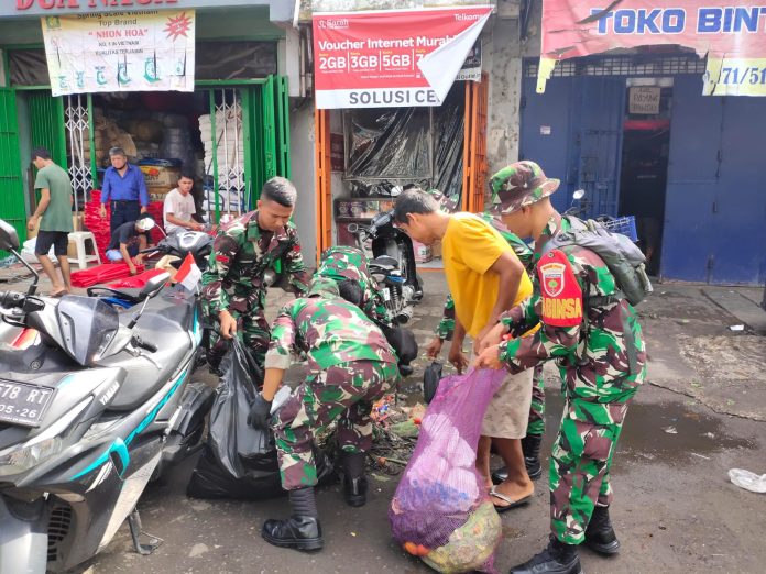 Dipimpin Danramil, Koramil 1408-08/Makassar Jadi Motor Gotong Royong di Pasar Kerung-Kerung