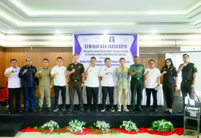 Keterangan yang berhasil dihimpun menyebutkan seminar dan lokakarya dibuka Kepala Kantor Wilayah Kementerian Hukum Sulsel Andi Basmal SH MH dirangkai pelatihan paralegal kelurahan dan Desa Desa se Kabupaten Soppeng dan se Kecamatan Lamuru Bone . Ketua Lembaga Bantuan Hukum (LBH) Cita Keadilan Abd Rasyid S.H M.H Cpl melaporkan UU Nomor 1 tahun 2023 yang mulai diberlakukan efektif pada 02 Januari 2026 membawa perubahan mendasar dalam wajah hukum Indonesia dari sistem hukum warisan kolonial menuju hukum nasional yang lebih relevan dengan kebutuhan masyarakat .