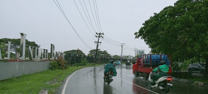 PEDOMANRAKYAT, MAKASSAR — Sebuah tiang listrik tampak miring di kawasan Metro Tanjung Bunga, tepat di depan Mall GTC Makassar. Kondisi tersebut menjadi sorotan warga, terlebih saat cuaca ekstrem dengan intensitas hujan tinggi dan tiupan angin kencang yang melanda Kota Makassar dalam beberapa hari terakhir.