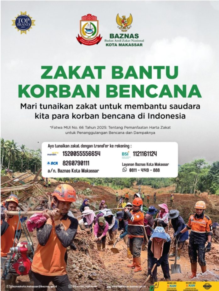 BAZNAS, melalui jaringannya dari pusat hingga daerah, menyerukan ajakan kepedulian nasional. “Bencana Sumatera membutuhkan kita semua!” menjadi pesan yang mengalir deras ke seluruh relawan dan masyarakat. BAZNAS Kota Makassar, sebagai bagian dari jaringan tersebut, turut menjadi salah satu yang paling responsif menyikapi tragedi ini.