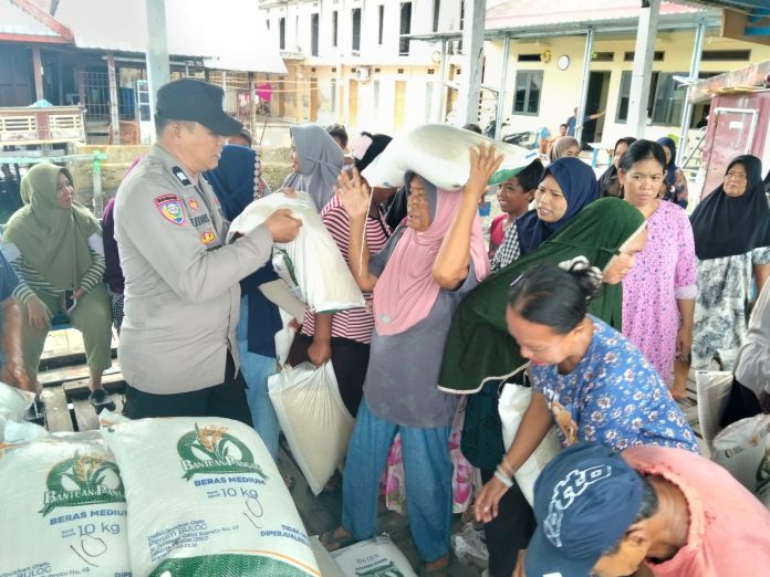 PEDOMANRAKYAT, MAKASSAR – Penyaluran bantuan pangan di Pulau Barrang Lompo, Kecamatan Kepulauan Sangkarrang, Makassar, berlangsung aman dan tertib. Bhabinkamtibmas setempat turun langsung mengawal proses pembagian beras dan paket sembako gratis agar bantuan pemerintah tepat sasaran.