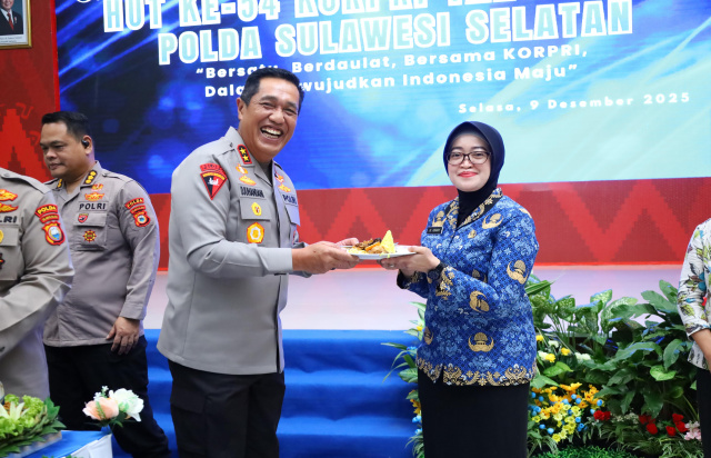 PEDOMANRAKYAT, MAKASSAR — Kapolda Sulawesi Selatan Irjen Pol. Djuhandhani Rahardjo Puro, S.H., M.H., mengajak seluruh Aparatur Sipil Negara (ASN) di lingkungan Polda Sulsel memperkuat integritas dan pengabdian bagi negara pada Syukuran HUT Ke-54 Korps Pegawai Republik Indonesia (Korpri) Tahun 2025 yang digelar di Aula Mappaoddang Mapolda Sulsel, Selasa (09/12/2025).
