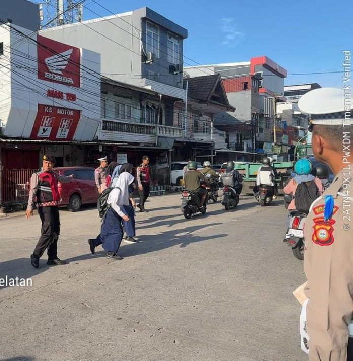 Setiap pagi hingga sore, personel jajaran Polres Pelabuhan Makassar terlihat berjaga di simpang jalan hingga depan gerbang sekolah. Mereka mengatur arus kendaraan, menahan pengendara yang melaju kencang, dan membantu siswa-siswi menyeberang dengan aman.