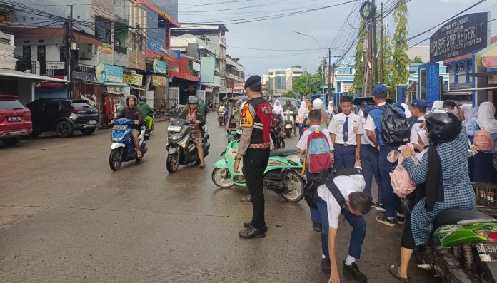 Di lokasi, personel Sat Samapta tampak sigap mengatur arus kendaraan, membantu para pelajar menyeberang jalan, serta memberikan imbauan kepada pengendara agar tetap tertib dan berhati-hati, terutama saat melintas di kawasan sekolah.