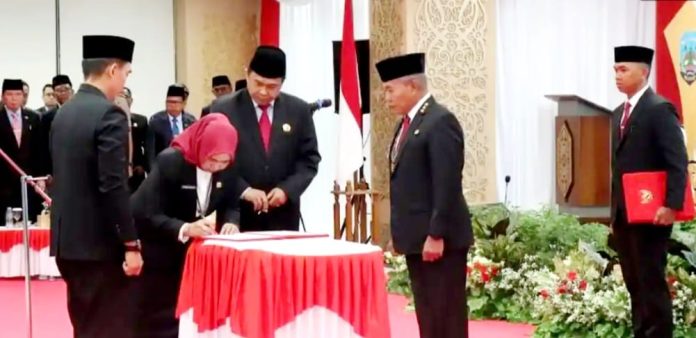 PEDOMANRAKYAT, TANJUNG SELOR – Gubernur Provinsi Kalimantan Utara, Dr. H. Zainal Arifin Paliwang, SH, M.Hum secara khidmat melantik serta memandu pengambilan sumpah jabatan Denny Harianto sebagai Sekretaris Provinsi (Sekprov) Kaltara definitif pada Jumat (19/12/2025).