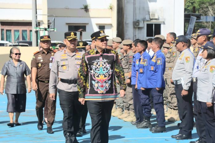 PEDOMANRAKYAT, TORAJA UTARA.- Jelang perayaan Natal 2025 dan Tahun Baru 2026 (Nataru), Polres Toraja Utara bersama Instansi Lintas Sektoral Kabupaten Toraja Utara melaksanakan apel gelar pasukan dalam rangka Operasi Lilin-2025 di Halaman Mapolres Toraja Utara, Panga, Kecamatan Tondon, Jumat (19/12/2025).