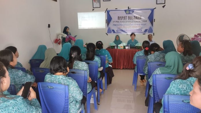PEDOMANRAKYAT, TOMONI TIMUR — Tim Penggerak Pemberdayaan dan Kesejahteraan Keluarga (TP PKK) se-Kecamatan Tomoni Timur menggelar rapat bulanan yang dirangkaikan dengan penyuluhan kesehatan gigi dan mulut, Jumat (19/12/2025). Kegiatan berlangsung di Aula Kantor Desa Cendana Hitam Timur, Kecamatan Tomoni Timur.