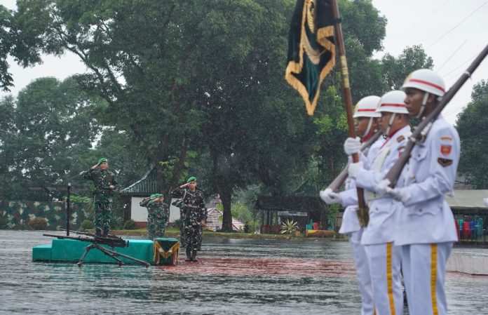 PEDOMANRAKYAT, MAKASSAR – — Di bawah guyuran hujan deras, semangat juang prajurit Infanteri TNI AD tetap membara dalam peringatan Hari Juang Infanteri ke-77 Tahun 2025 yang dirangkaikan dengan pelaksanaan Pleton Beranting (Tonting) Yudha Wastu Pramuka Jaya (YWPJ) di Lapangan M. Yusuf Makodam XIV/Hasanuddin, Makassar, Jumat (19/12). Kegiatan tersebut dipimpin Pangdam XIV/Hasanuddin Mayjen TNI Bangun Nawoko dan diikuti satuan Infanteri jajaran Kodam XIV/Hasanuddin serta Divisi Infanteri 3/Kostrad.