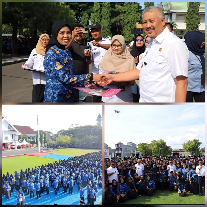 PEDOMANRAKYAT, PINRANG – Bupati Pinrang, Irwan Hamid secara simbolis menyerahkan 4.193 Surat Keputusan (SK) Pengangkatan Pegawai Pemerintah dengan Perjanjian Kerja (PPPK) Paruh Waktu di lingkungan Pemkab Pinrang yang digelar di Halaman Kantor Bupati Pinrang, Rabu (24/12).