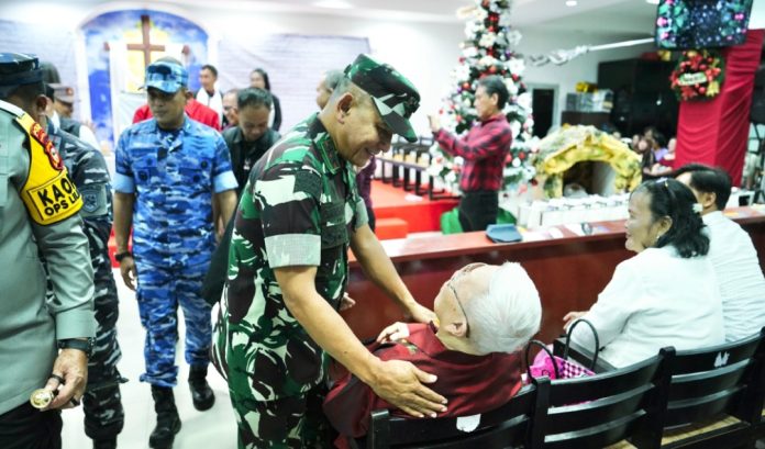 PEDOMANRAKYAT, MAKASSAR — Pangdam XIV/Hasanuddin Mayjen TNI Bangun Nawoko bersama Forum Koordinasi Pimpinan Daerah (Forkopimda) Provinsi Sulawesi Selatan turun langsung memantau situasi keamanan dan ketertiban masyarakat (kamtibmas) pada pelaksanaan Misa Natal di Kota Makassar, Rabu (24/12/2025). Kegiatan ini dilakukan sebagai bentuk komitmen bersama dalam menjamin perayaan Natal berjalan aman, tertib, dan khidmat.
