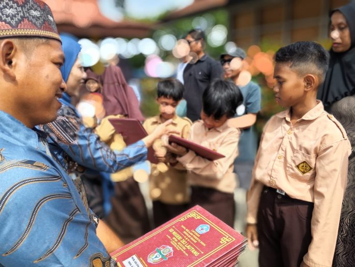 PEDOMANRAKYAT, WAJO – UPTD SDN 283 Lautang, Kecamatan Belawa, Kabupaten Wajo, melaksanakan penyerahan rapor semester ganjil Tahun Pelajaran 2025/2026 pada Sabtu (27/12/2025). Kegiatan yang berlangsung di pelataran sekolah tersebut didampingi oleh para orang tua siswa.