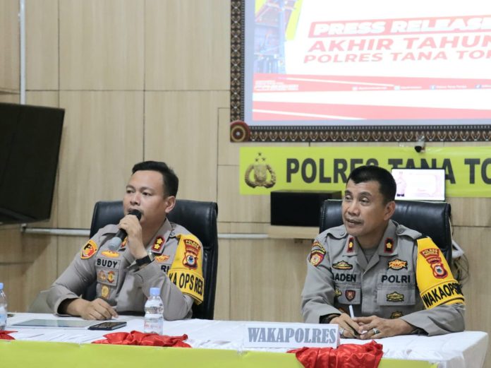 PEDOMANRAKYAT, TANA TORAJA.- Diakhir tahun 2025 Kapolres Tana Toraja, AKBP Budi Hermawan, memimpin kegiatan press release akhir tahun 2025 yang digelar di Mapolres Tana Toraja bersama awak Media dan dihadiri PJU Polres Tana Toraja Selasa, (30/12/2025).