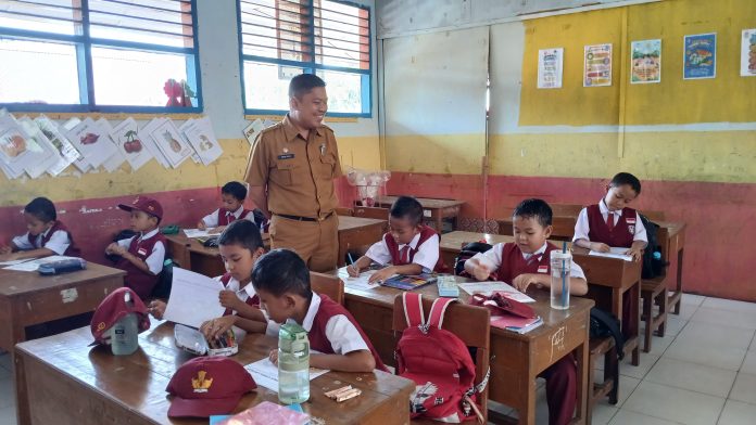 PEDOMANRAKYAT, SINJAI — Kepala Dinas Pendidikan Kabupaten Sinjai, Irwan Suaib, memantau langsung pelaksanaan hari pertama masuk sekolah pasca libur semester di sejumlah sekolah yang berada di Kecamatan Sinjai Utara, Senin (5/1/2026).